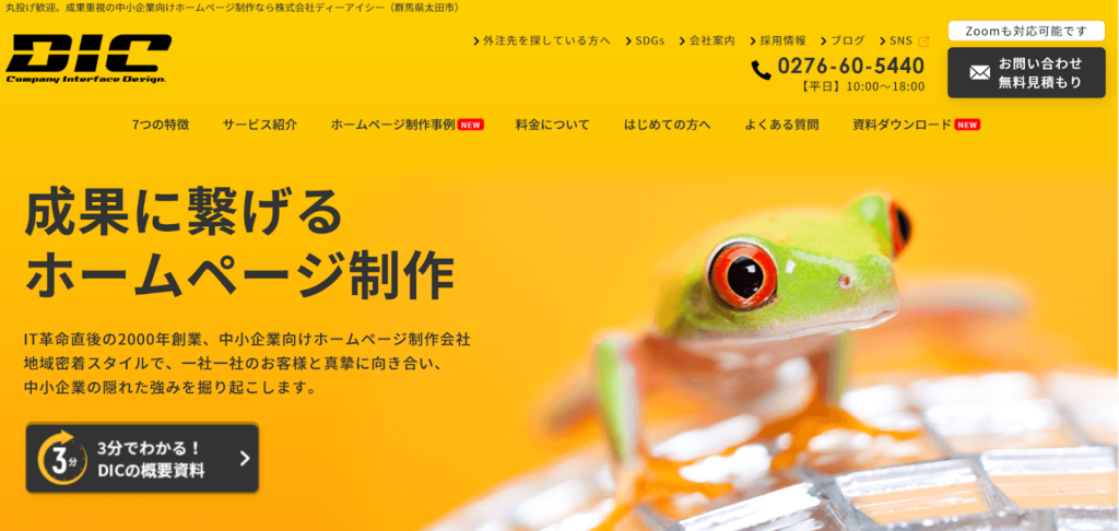 株式会社ディーアイシーは、2000年創業の群馬県太田市を拠点とする、中小企業に特化したホームページ制作会社です。「丸投げ歓迎」を掲げ、多忙な経営者や担当者に代わって企画から取材、ライティング、写真・ドローン撮影までをワンストップで引き受ける手厚いサポートが最大の魅力です。